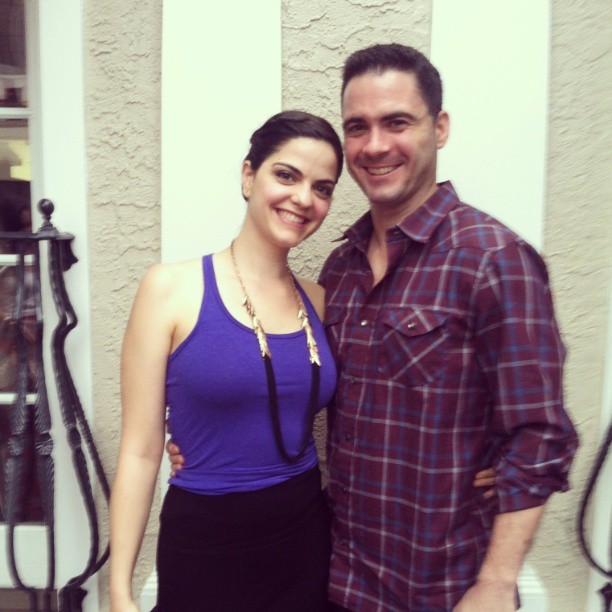 6. "I saw an ad for a singing contest in Manhattan and went to it for the hell of it (I'm not a singer and didn't want to be one). To my amazement, I won, and the prize was my own one-woman-cabaret show. I knew nothing about cabaret, but if New York producers want to give you a show, you take it. I started going to the Lincoln Center Library for the Performing Arts every day to check out music, and that's where I met Scott, whose job was to hand out sheet music at the library. When I first saw him, I thought I saw an aura of light around him and I felt a strange feeling as if I knew him really well, even though I knew I'd never seen him before. Now we have been married for more than a decade." —Natalia aka "Saw Lady"