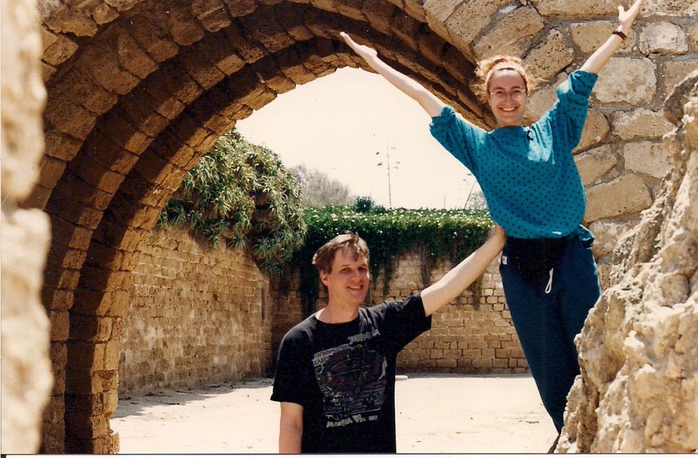 8. "My husband and I have been married for 19 years this past June. We met through our mutual (and still best) friend, Howie, who was having a birthday party and wanted both of us to join him at the pub for a celebration. I saw Howie and my now-husband, Dave, walking up to the dorm to meet me, and all I could think at that moment was, I am in love. I am going to be with that man. Dave and I had an instant connection, talked all night, and were best friends and soul mates for many years after. We each dated different people along the way and finally in our mid-20s, he made the move and explained that he had been in love with me from the start. It took a while for us to pull it together, but we have been best friends for almost 30 years and married for 19 of those." —Sue